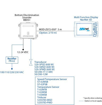 • 600 kW (8 m) transducer: 520-5MSD / 520-5PSD / 520-5PWD / 525STID-MSD (USA) / 525STID-PWD (USA)