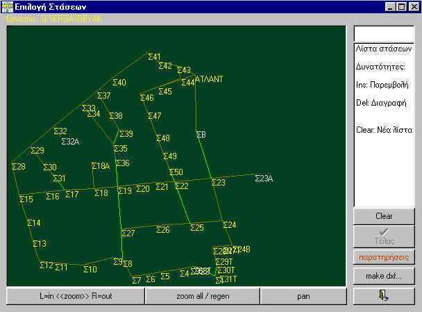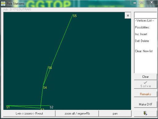 Επίλυση όλων των ειδών των τομών με βοηθητικά σχήματα. Εισαγωγή δεδομένων (γωνιών, πλευρών και συντεταγμένων) από τη βάση δεδομένων της πολυγωνομετρίας. Ενημέρωση του αρχείου των στάσεων με τις νέες συντεταγμένες.